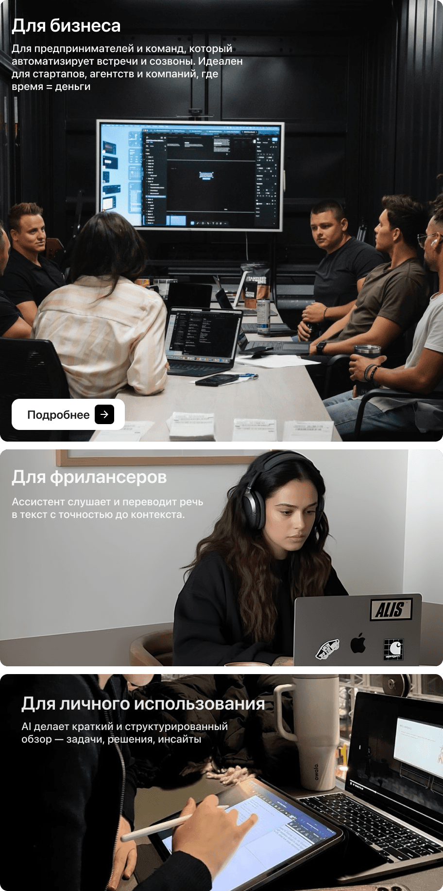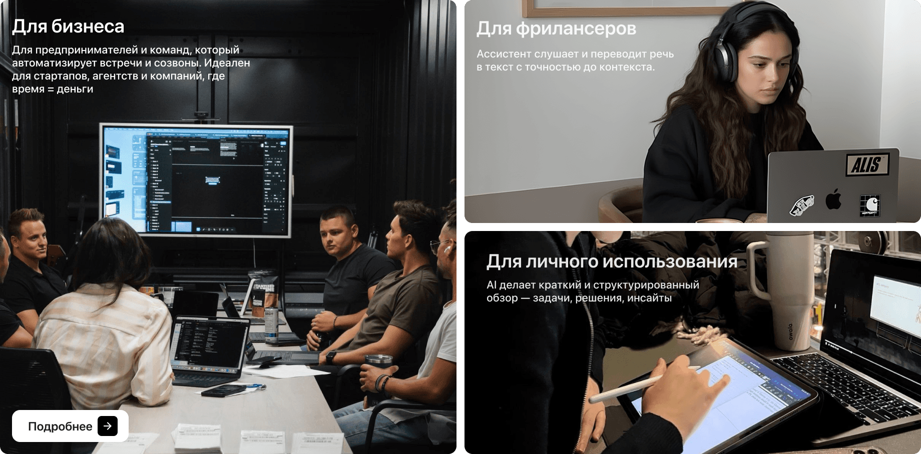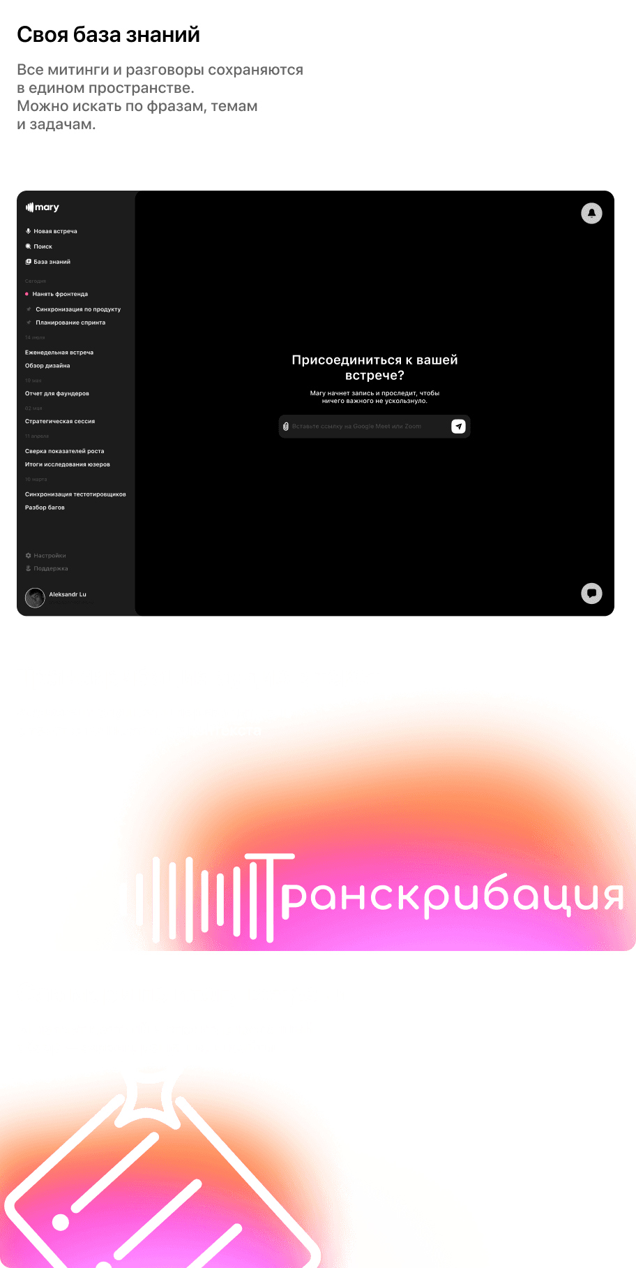 Распознаёт речь, отделяет важное, фиксирует ключевые мысли